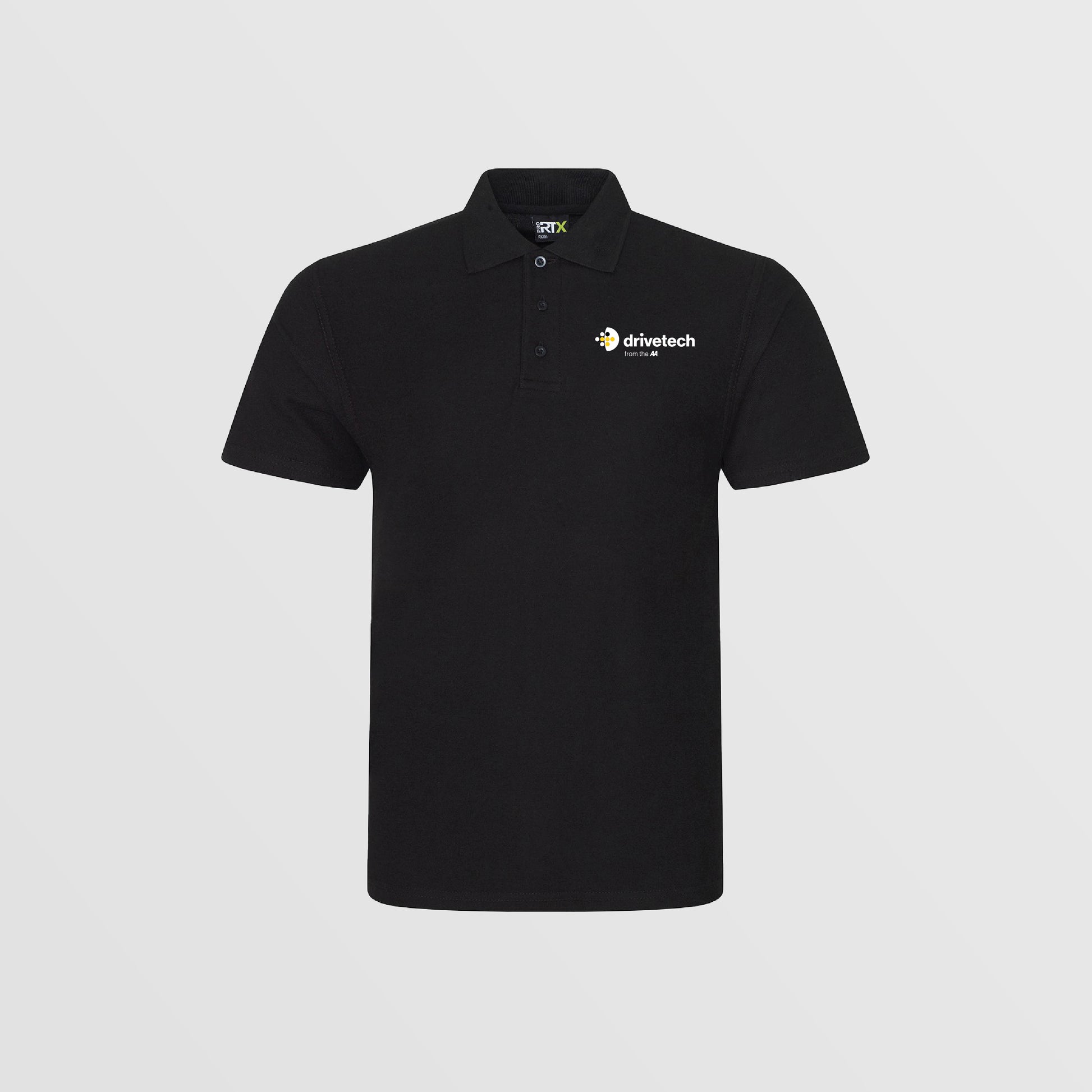 Branded with the embroidered Drivetech logo, this black polo shirt combines style and durability. It features a ribbed self-coloured collar, a 3-button placket, and twin-needle stitching for long-lasting wear.
